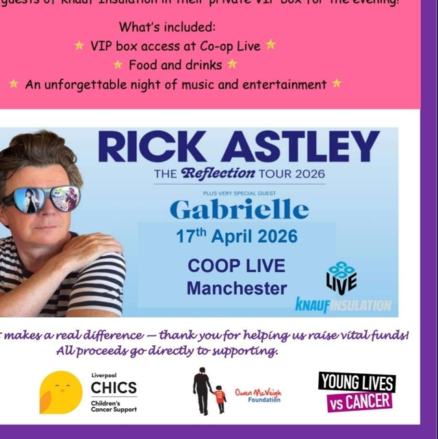 This is to enter the Rosie Raffle for two tickets for a VIP box at Rick Astleys COOP Live Manchester Gig, all profits will be donated to the fundraiser so your entry will be helping so much!